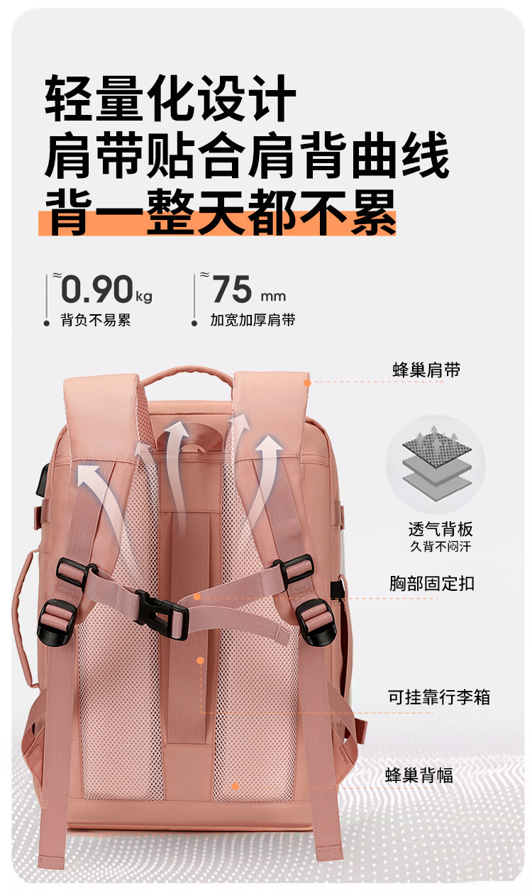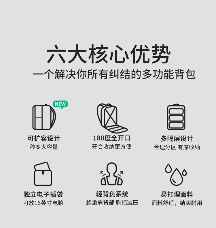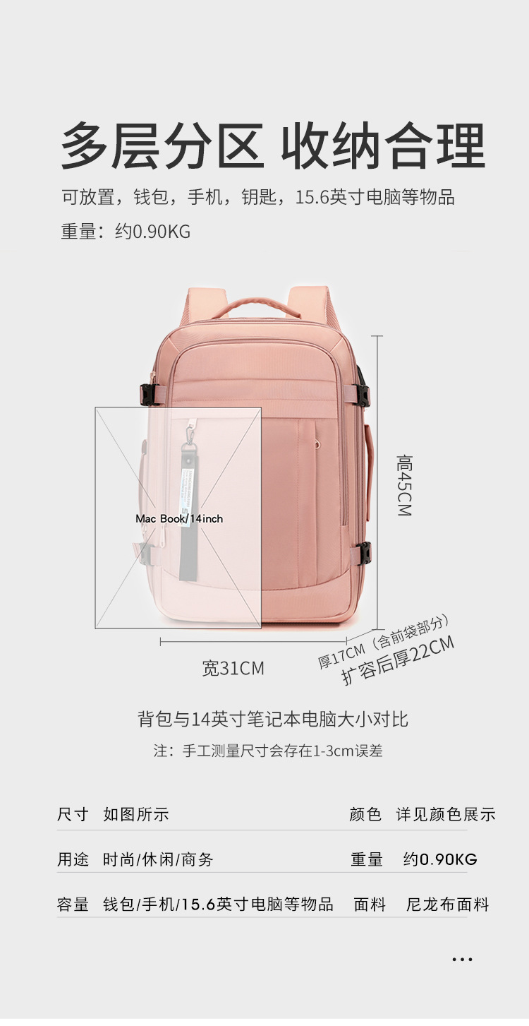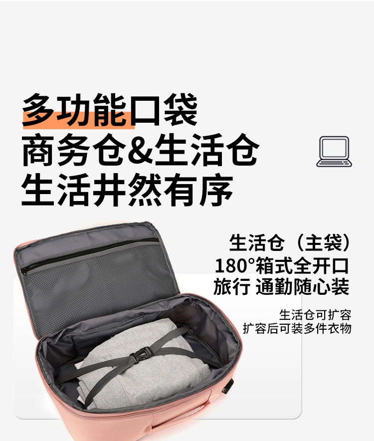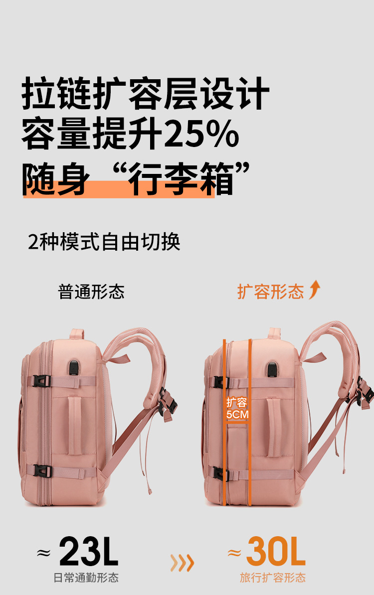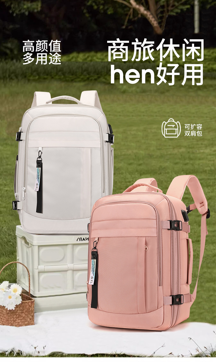 商务双肩包多功能大容量可扩展防水日常上班休闲行李背包可扩展